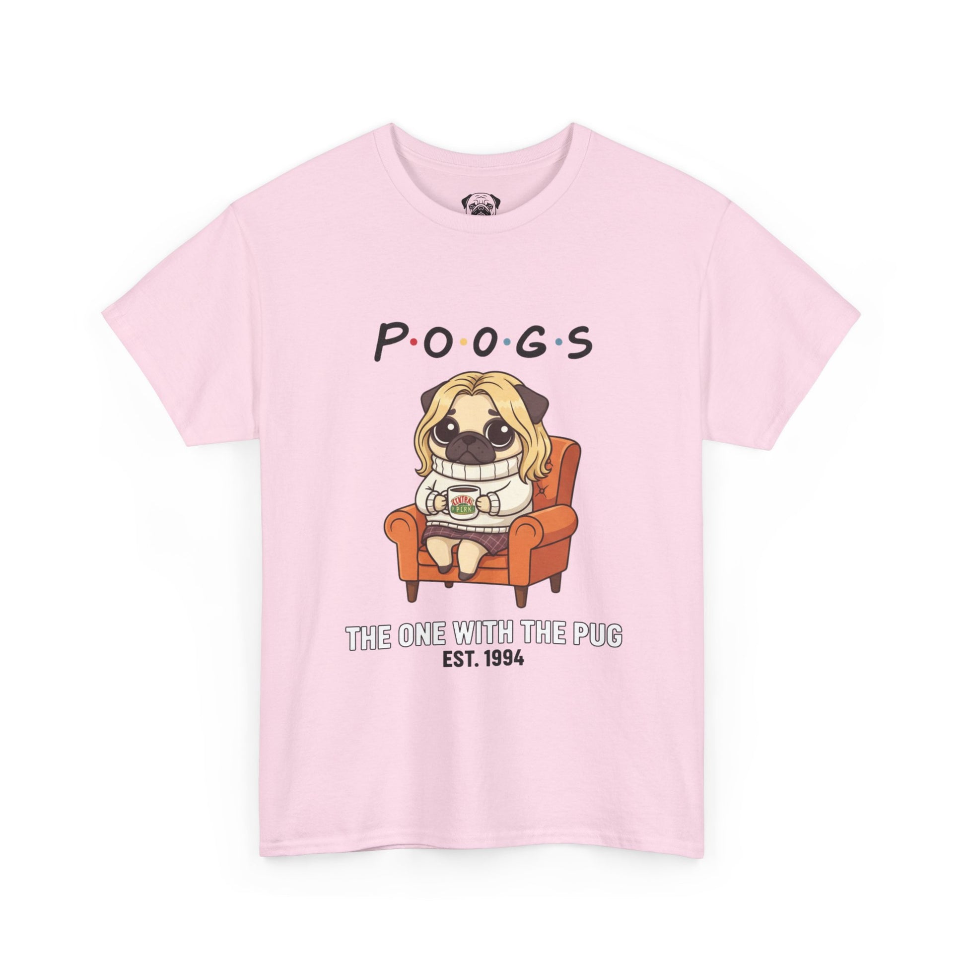 Cute Friends Poogs The One with The Pug Rachel Tee, Casual Dog Lover's T-Shirt, Gift for Pet Owners, Funny Friendship Shirt, Unisex Cotton Tee